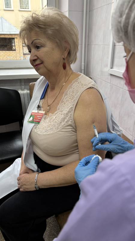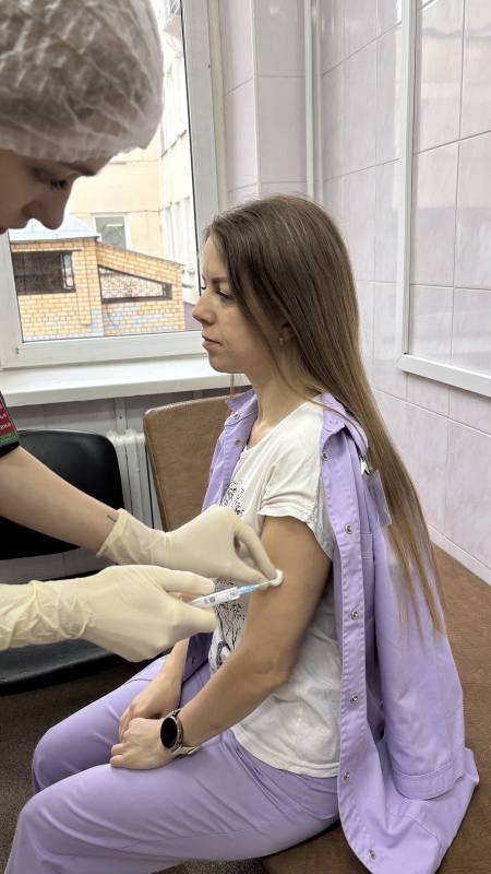 Медицинские работники УЗ «Бобруйская городская поликлиника 7» присоединились к акции «Начни с себя!». Сотрудники поликлиники личным примером демонстрируют важность иммунизации для защиты как себя, так и населения от сезонных вирусных инфекций.