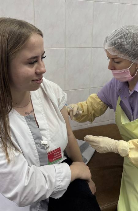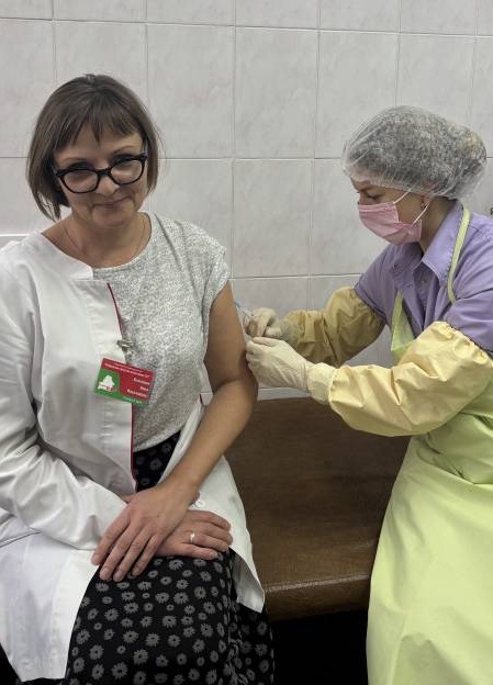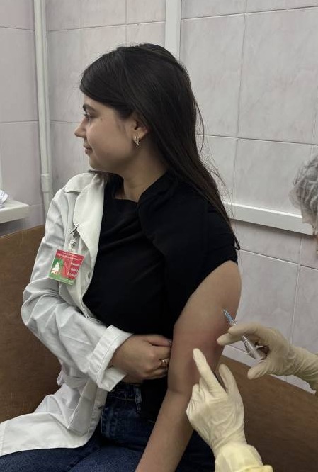 Главный врач и молодые специалисты УЗ «Бобруйская городская поликлиника 7» личным примером демонстрируют важность иммунизации и формирование коллективного иммунитета.